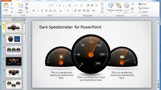 This is another good speedometer template which comes in white and green color tones. This template too provides speedometer themed sample slides with different layouts and clipart images. The introductory slide contains three speedometers, followed by a slide where you can add a summary or introduction of your topic. Other slides come with colorful speedometer images and layouts that can help you present information in a sequence. Like the Dark Speedometer Template, you can rotate the needles on the speedometer images and also customize them in various other ways using PowerPoint Ribbon menu options like the Drawing Tools.