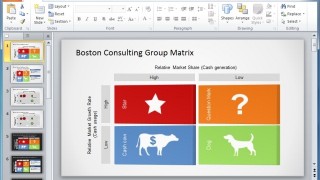 This is the perfect template for making Boston Matrix diagrams and presentations. The template comes loaded with many appropriate sample slides with layouts that have been specifically designed to help you create a BCG Matrix with ease. The template offers Boston Matrix sample slides in different colors and designs, with relevant clipart and images.