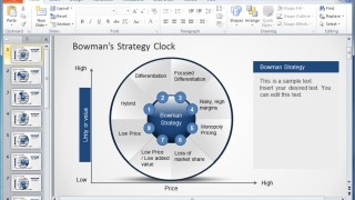 Bowman’s Strategy Clock PowerPoint Template can help you create the famous Bowman’s marketing model using editable sample slides. You can use this template for not only creating presentation slides but make an entire Bowman’s clock diagram for your company, using the given editable slides.