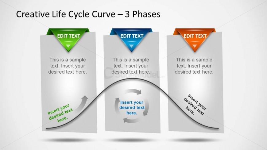 Return to Free Creative Life Cycle Curve with 3 Phases for PowerPoint.
