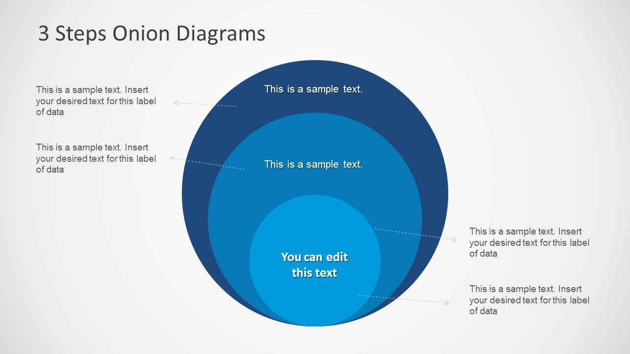 This 3 Step Onion diagram PowerPoint template let you easily create basic onion diagram of up to 3 steps using PowerPoint shapes with a clear visual representation and make a strong visual impact.
