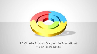 The circular diagram template has two concentric circles which makes this very useful to describe processes with hierarchy levels. Alternatively you can download other circular diagrams for PowerPoint with 3D and perspective effects.