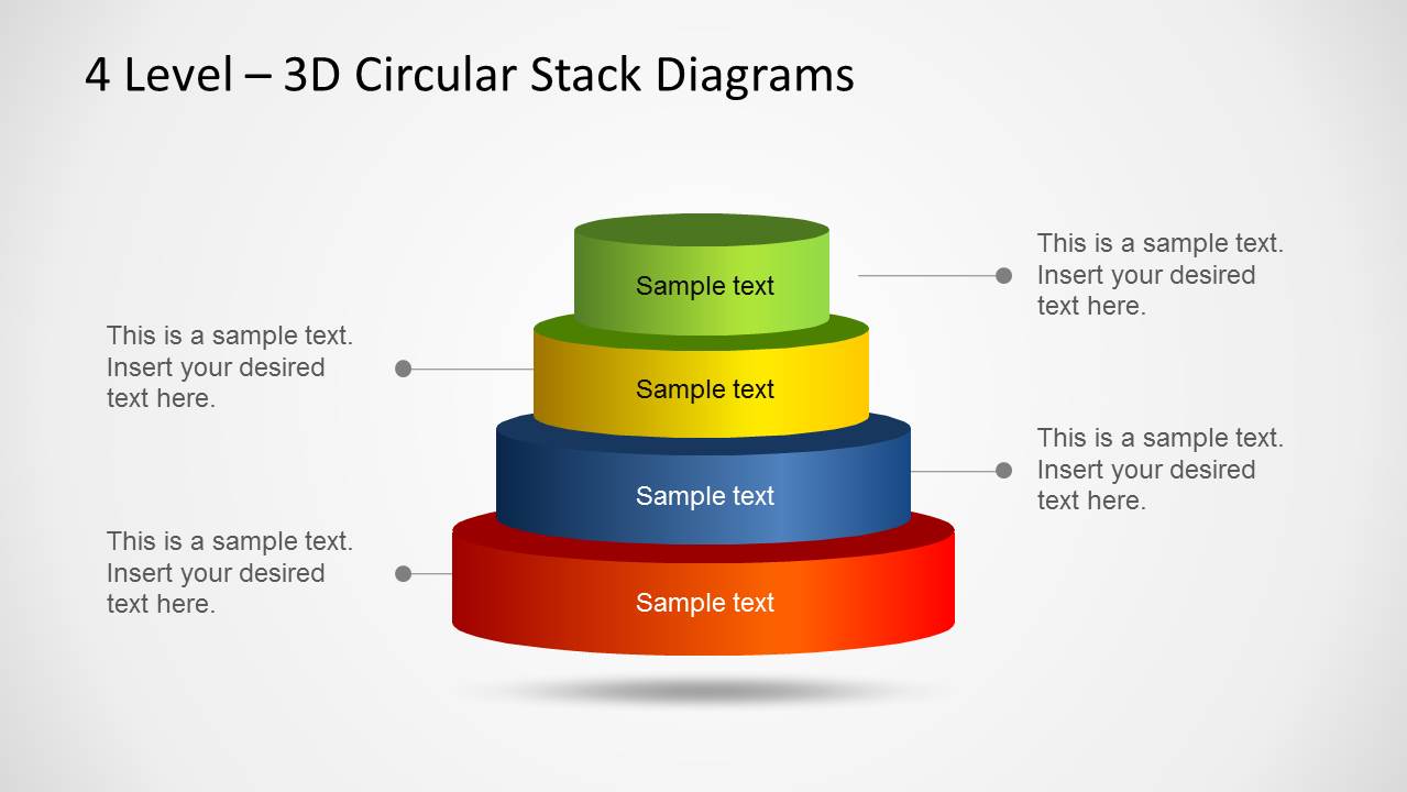 3D Circular Stack Diagram for PowerPoint with 4 Levels is an awesome stacked diagram or multi-layered diagram design for PowerPoint presentations.