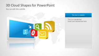 3D Cloud Shapes template for PowerPoint includes unique slide designs with different shapes and icons for presentations on cloud computing and social media.