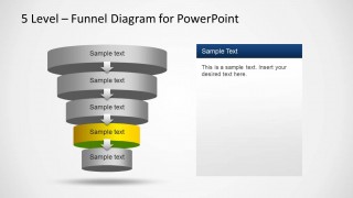 5 Level Funnel Diagram Template for PowerPoint is a presentation design template containing a nice four steps funnel diagram design that you can use to prepare presentations on sales funnel analysis or marketing funnel PowerPoint presentations.