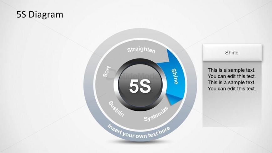 Shine, sweeping or cleanliness are addressed in this phase. The goal is is that we are all happier and hence more productive in clean, bright environments.