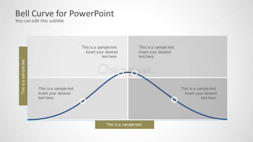 This Bell Curve slide design for PowerPoint can be used to represent the Gaussian curve in a PowerPoint presentation. The slide design contains a Bell curve with four quadrants.