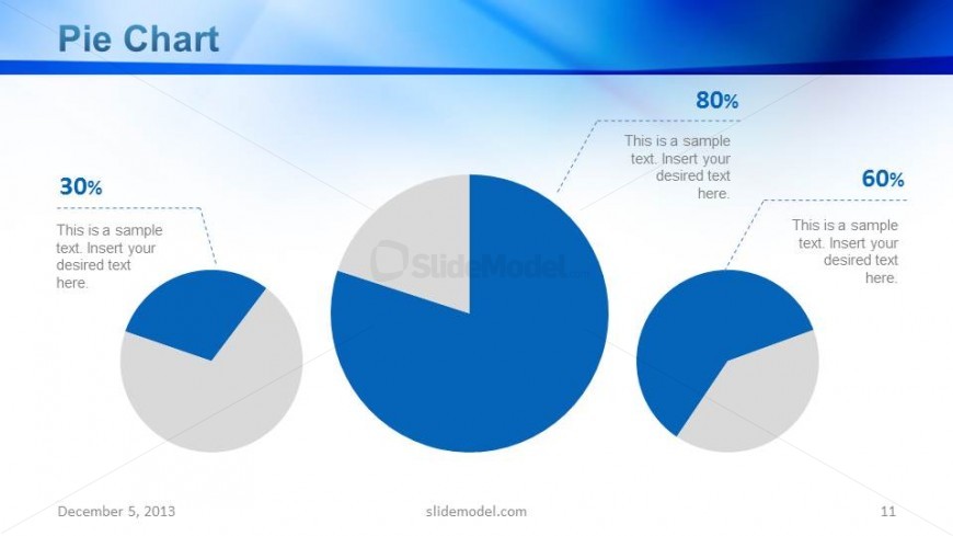 Home Blue Company Profile Business PowerPoint Template 3 Data Driven Pie Chart Slide Design with 2 Pie Chart Colors