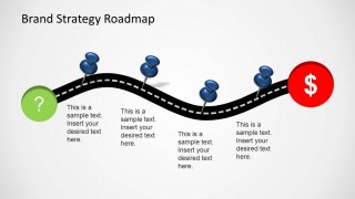 Brand Strategy Roadmap Template for PowerPoint is a presentation design containing a roadmap illustration that you can use in presentations on brand strategy and marketing. This brand strategy PowerPoint timeline template is also suitable for other strategy PowerPoint presentations. The slide design contains a road illustration with milestones that you can use to define the plan phases.