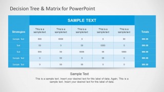 Decision Tree & Matrix Template for PowerPoint is a PowerPoint presentation design created for presenters who need to prepare presentations on decision making, problem solving or root cause analysis. You can use this decision matrix template for PowerPoint to describe the process required to make decisions in an organization.