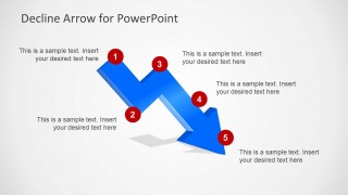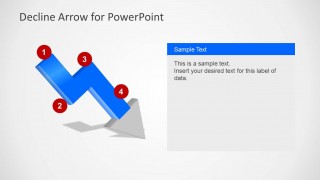 Decline Arrow for PowerPoint is a simple PowerPoint template containing a decline arrow design with captions. You can use this simple arrow template for PowerPoint to represent a crisis or down in sales. If you need an arrow design with the opposite direction you can download the raising arrow template for PowerPoint.