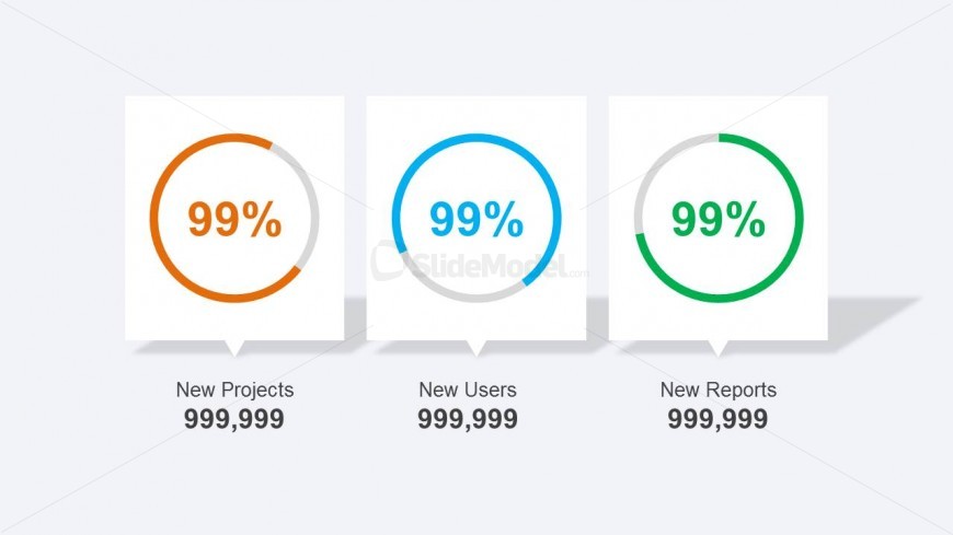 Original slide design that you can use to make a presentation with 3 corporate KPI or metrics.