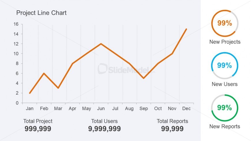 Home Orange Project Dashboard PowerPoint Template Orange Line Chart PowerPoint Template with KPI & Metrics