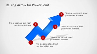 Raising Arrow for PowerPoint is a simple PowerPoint template with 3D raising arrow design created with PowerPoint shapes. The raising arrow for PowerPoint can be used to describe a process of up to five steps using the small labels.