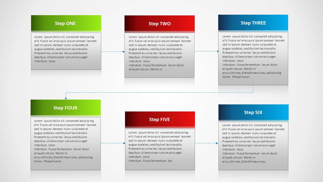 Simple Process diagram template for PowerPoint with Textboxes is a PowerPoint diagram with a flow chart design created with textboxes. You can edit the textbox content and title to describe a simple process diagram. The text diagram comes with different slide designs including sample text and placeholders. Each textbox contains a title and description.