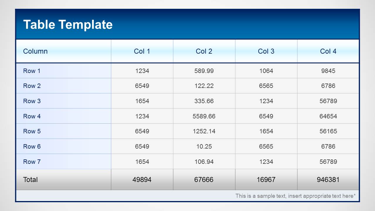 Table Template for PowerPoint is a PowerPoint design containing awesome tables for presentations. You can use the table design to make a presentation dashboard using PowerPoint, a detailed comparison between products and features as well as reports in Microsoft PowerPoint presentations.