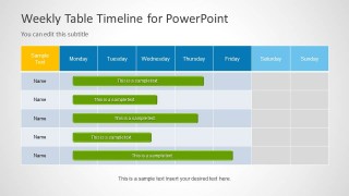Table Timeline Template for PowerPoint is a very useful timeline design for Microsoft PowerPoint presentations with table timeline style. You can use this table template to prepare timelines in PowerPoint for Task Management or Project Planning presentations as well as Resource Planning or new product development.