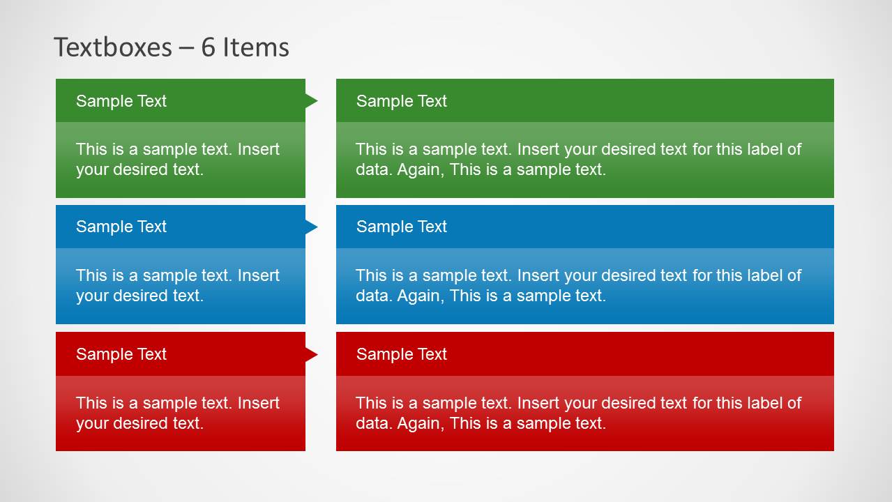 Home PowerPoint Templates Text & Tables Textboxes Template for PowerPoint with Red, Green and Blue Header Color