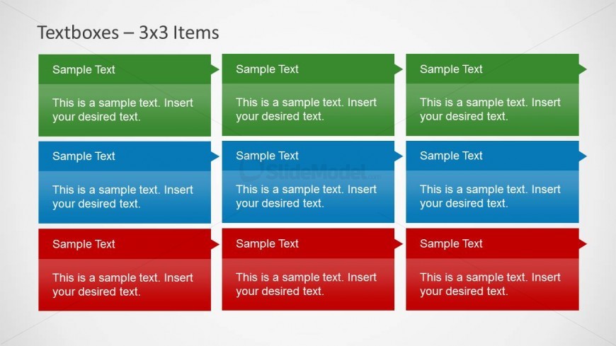 Return to Textboxes Template for PowerPoint with Red, Green and Blue Header Color.