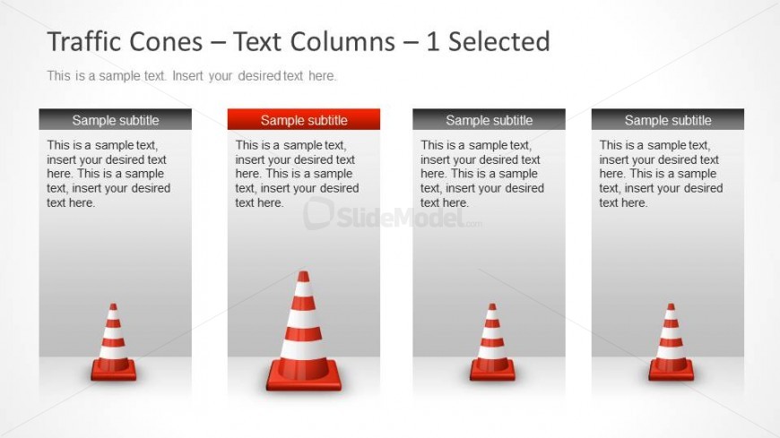 Home Traffic Cone Shapes for PowerPoint 4 Vertical Text Boxes for Milestones in PowerPoint