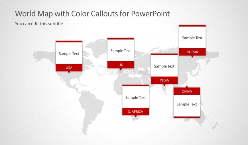 Home World Map with Color Callouts for PowerPoint 6076-01-worldmap-with-textboxes-3